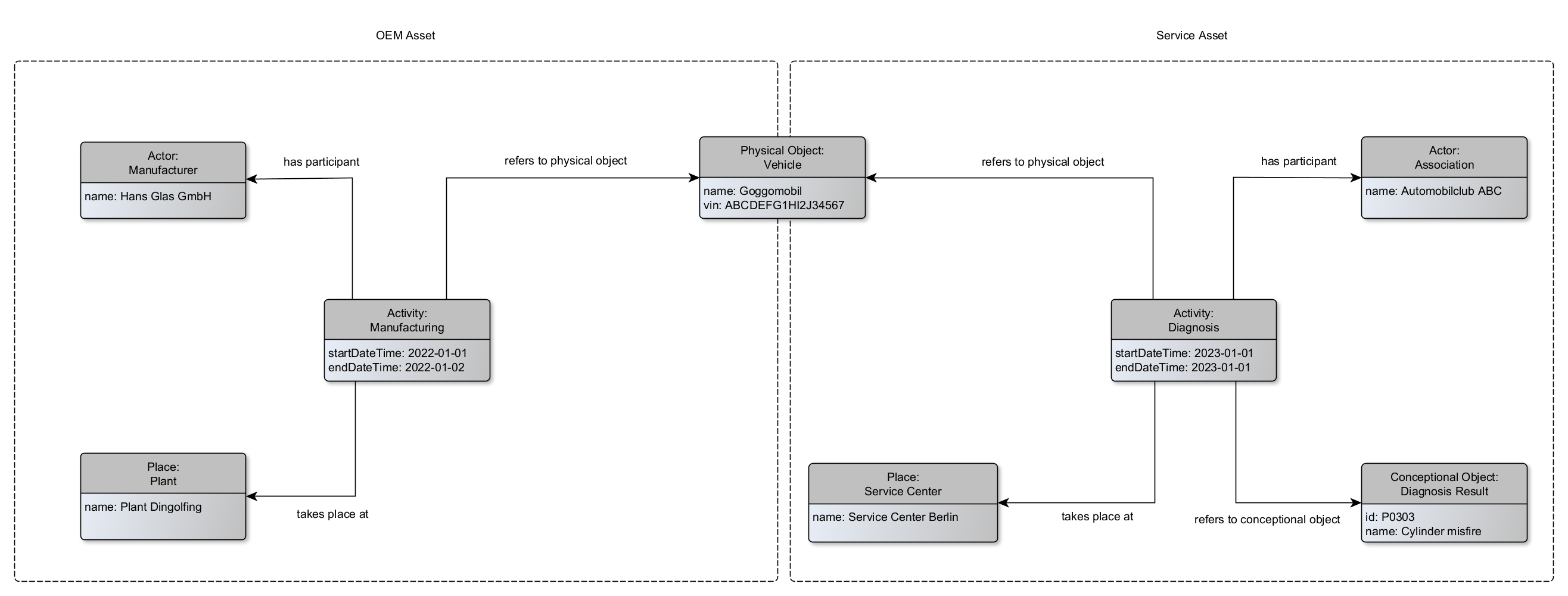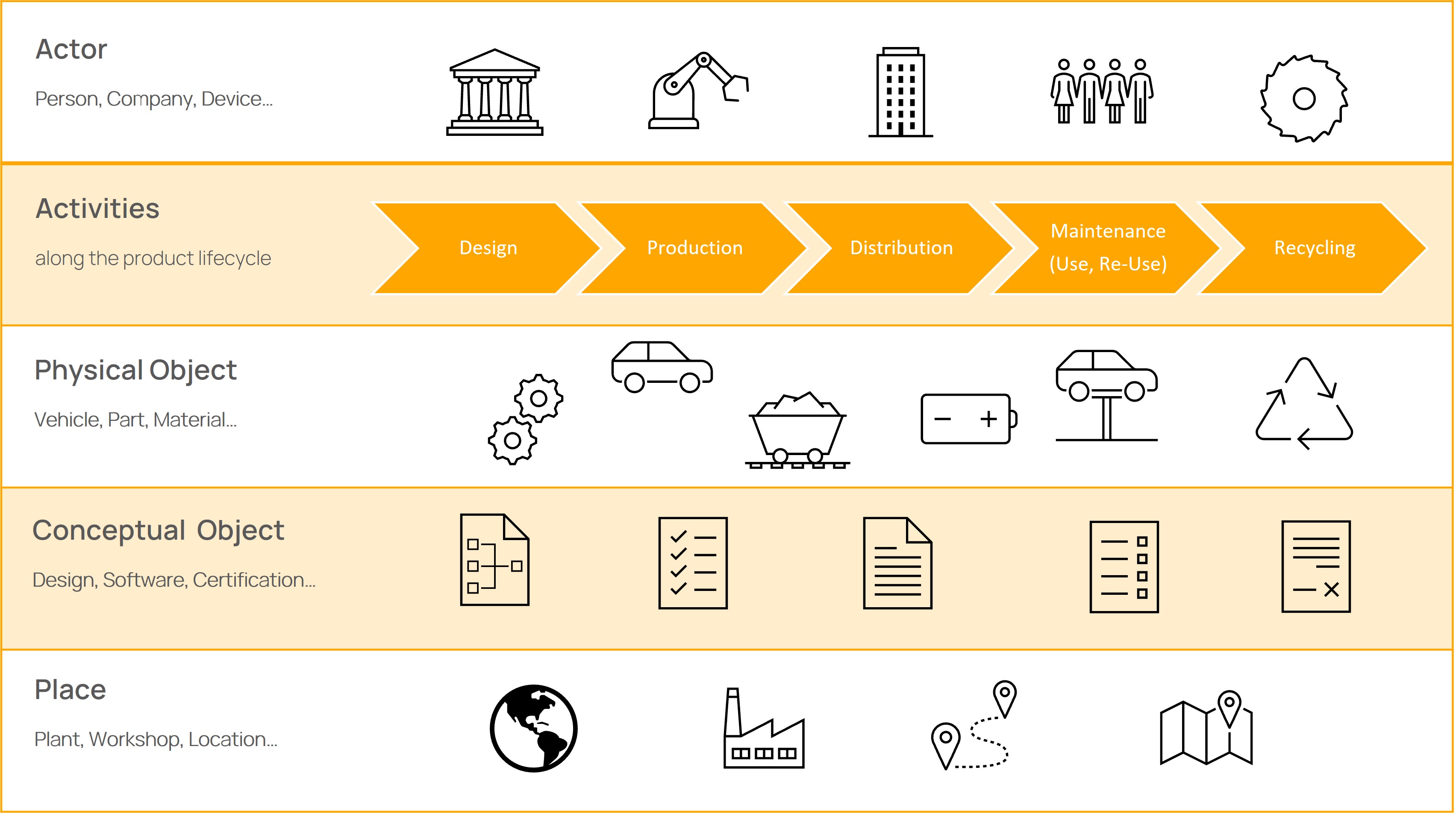 On the other hand, the ontology-based approach represents the underlying data in assets as a generalized graph structure. This allows flexible querying of typed and linked data - no matter of its physical storage and retrieval. In applying the ontology-based data modelling in Catena-X, the following fundamentals should be achieved: